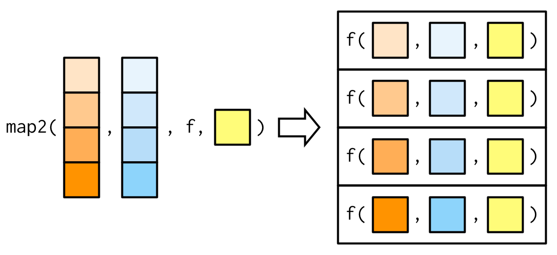 map2()iterates over two vectors in parallel.
