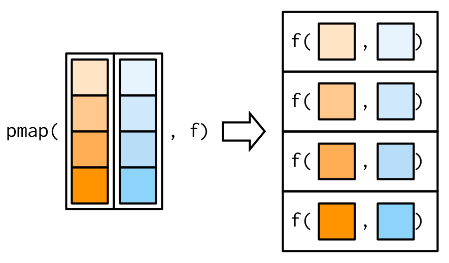 pmap()supply a list to iterate over any number of arguments in parallel.