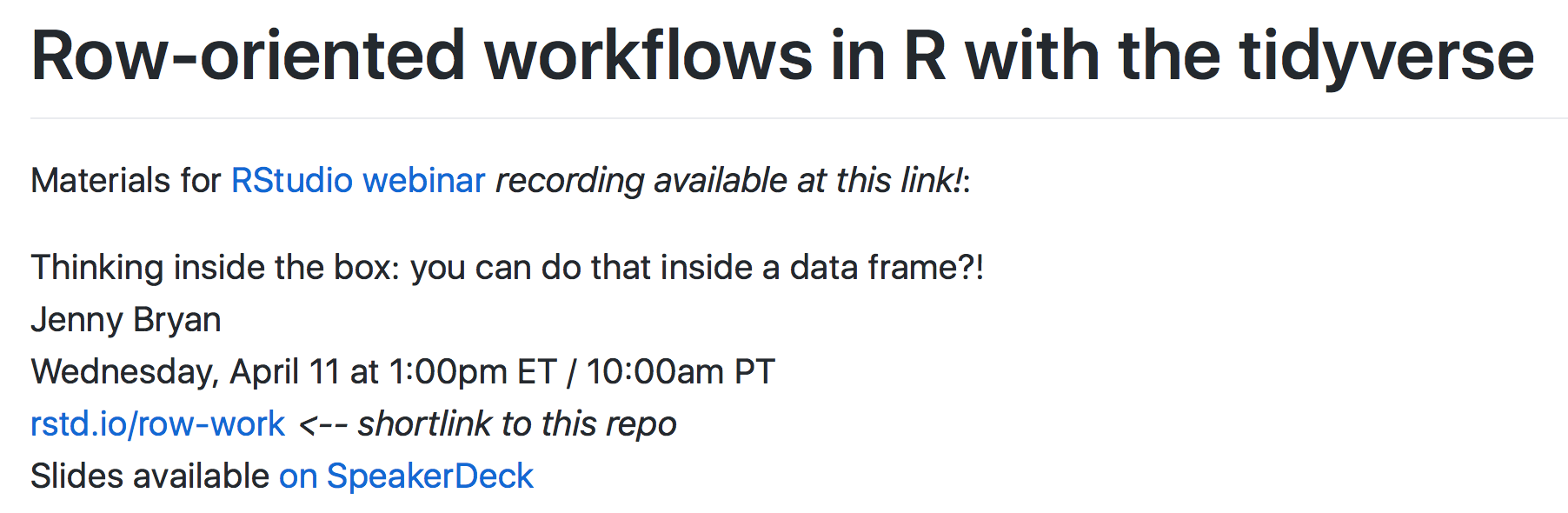 Jenny Bryan row-oriented workflows workshop